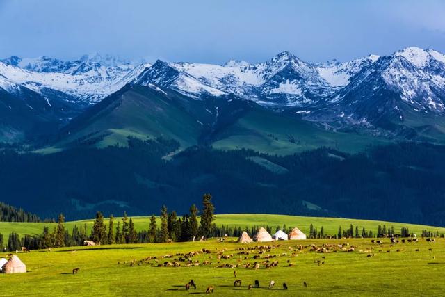 当我们远离尘嚣,来到新疆的广袤天地之间,仿佛置身于一个世外桃源,蓝天白云下,连绵的雪山、碧绿的草原、清澈的湖泊和金黄的沙漠构成了一幅绝美的画卷,这里,自然的美景让人心旷神怡,内心的纷扰也随之消散。